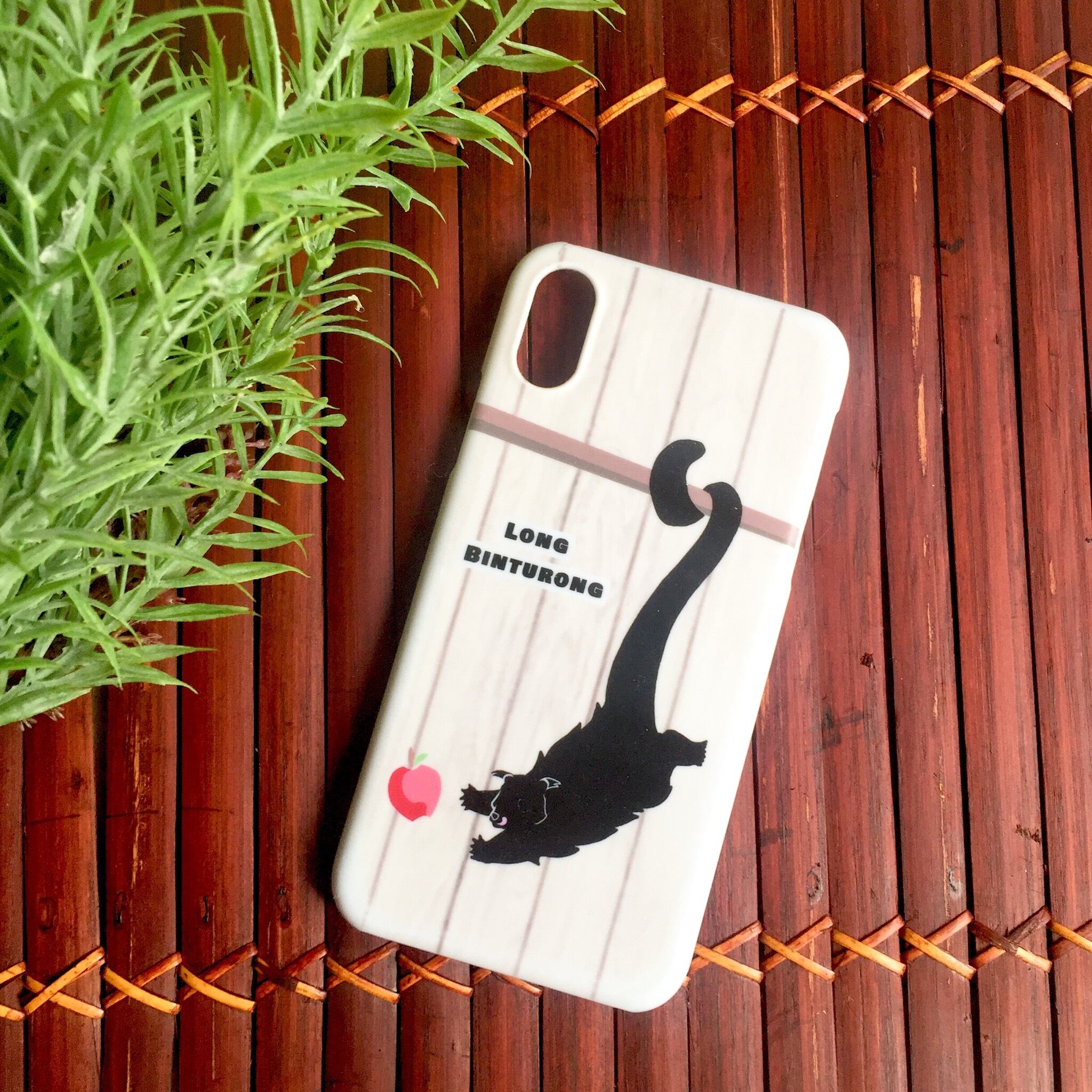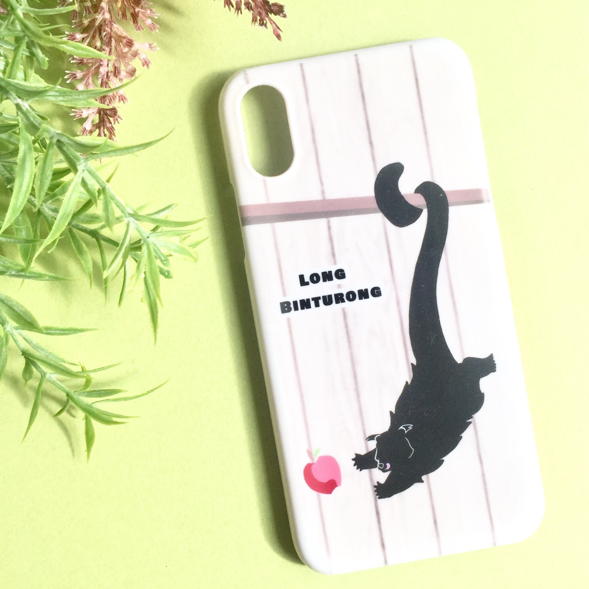 ロングな尻尾を器用に操るビントロングのシルエットがあしらわれた、ナチュラルでウッディな北欧テイストがかわいいスマホケースです。